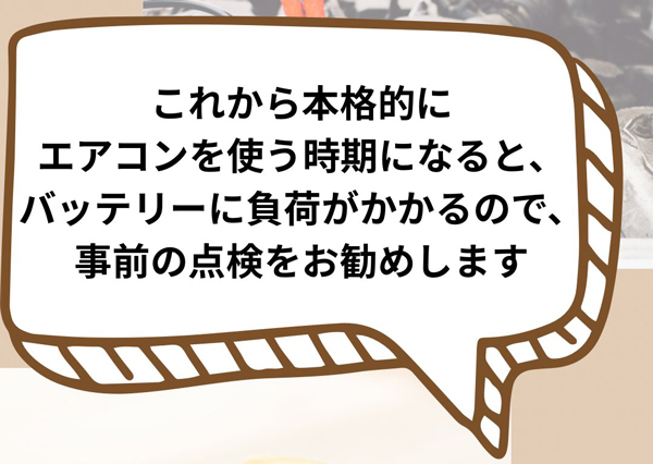 愛車のバッテリーは弱っていませんか? 2026.04.27 輸入車センター宮竹 こんにちは。 本日の投稿を担当いたします、 田中です☀️ 愛車のバッテリーは弱っていませんか? 暑くなり、エアコンを使う時期になると バッテリーに負荷がかかりますので 事前の点検をお勧めします。 皆さまのご来店・お問い合せをお待ちしております🌼 前の記事を見る 一覧へ戻る この記事をシェアする: