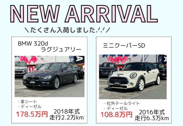 輸入車入荷しました🚗🌸 2026.03.14 輸入車 こんにちは🙂↕️🫧 本日の投稿を担当致します、輸入車センターの富永です🌿 春の新生活にぴったりな車が入荷しました🚗🌸 通勤やお出かけにぴったりの車を掲載しています✨️ 気になるお車があれば お気軽にお問い合わせください😊.ᐟ.ᐟ ※金額は支払総額表示です 前の記事を見る 一覧へ戻る 次の記事を見る この記事をシェアする: